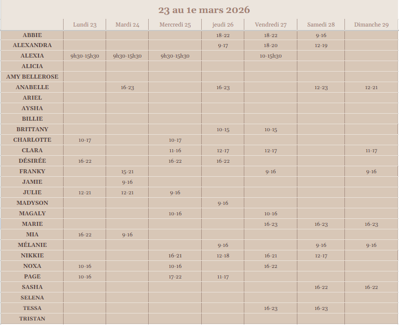 Horaire de la semaine